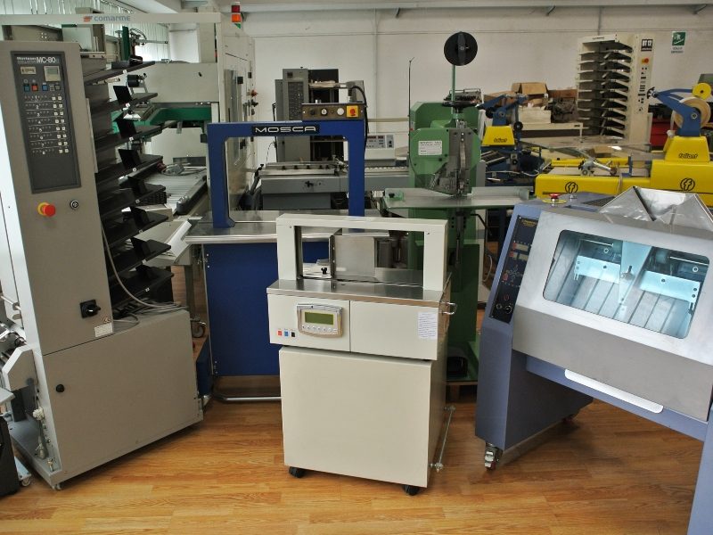 In our warehouse, we have a lot of packaging machines, naturally used, thus responding to the different needs of our customers. Among these we find complete collating lines or single collators, folding machines, perfect binding machines, stitching machines, banding machines, calendar machines, cellophane machines and laminators.