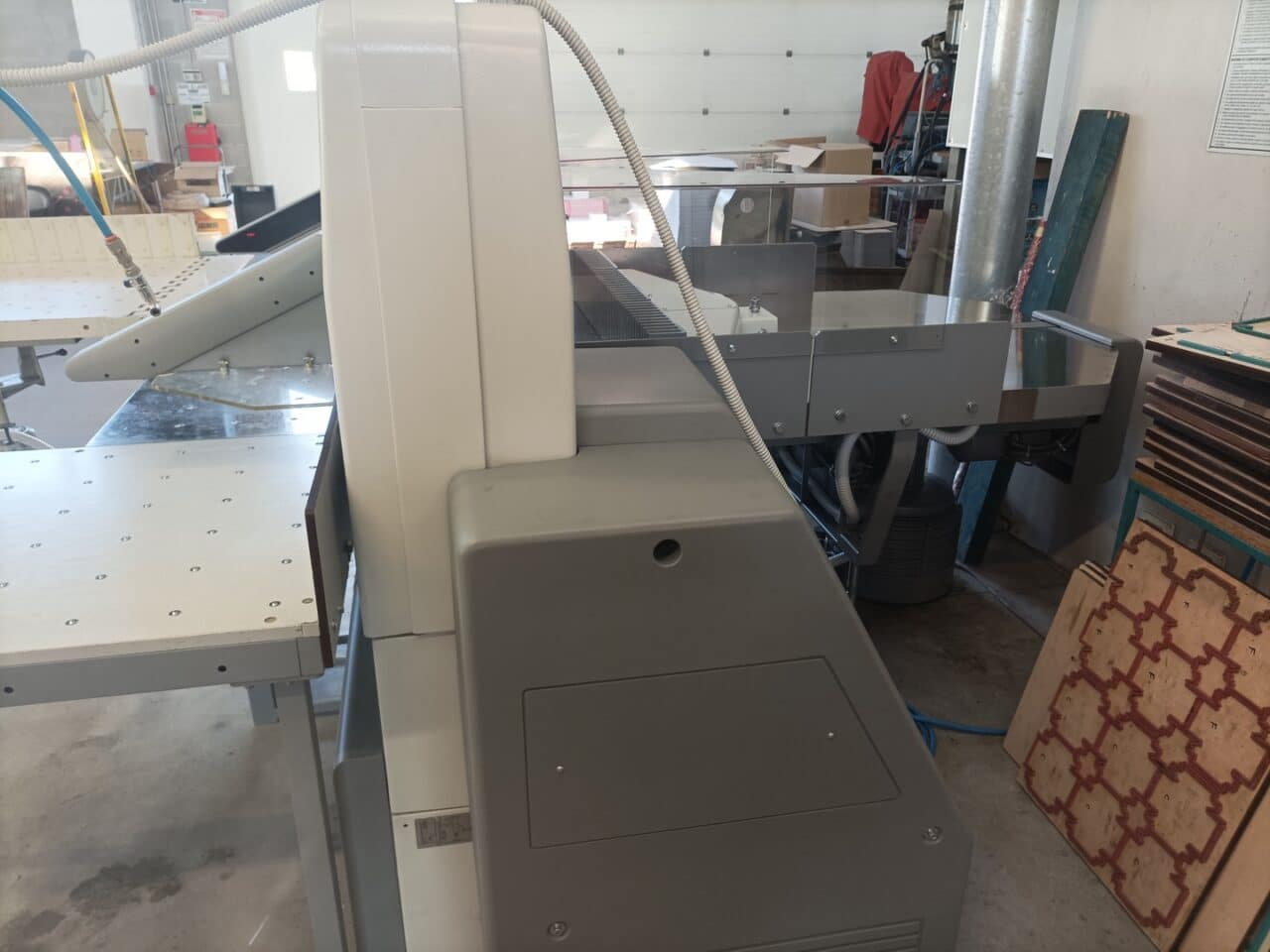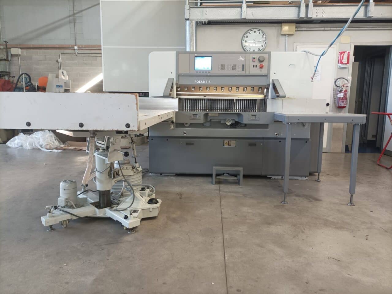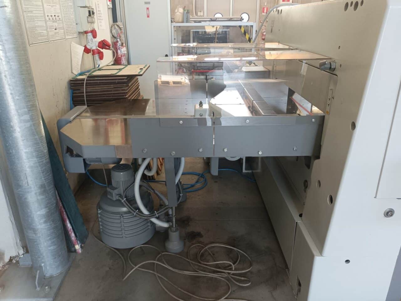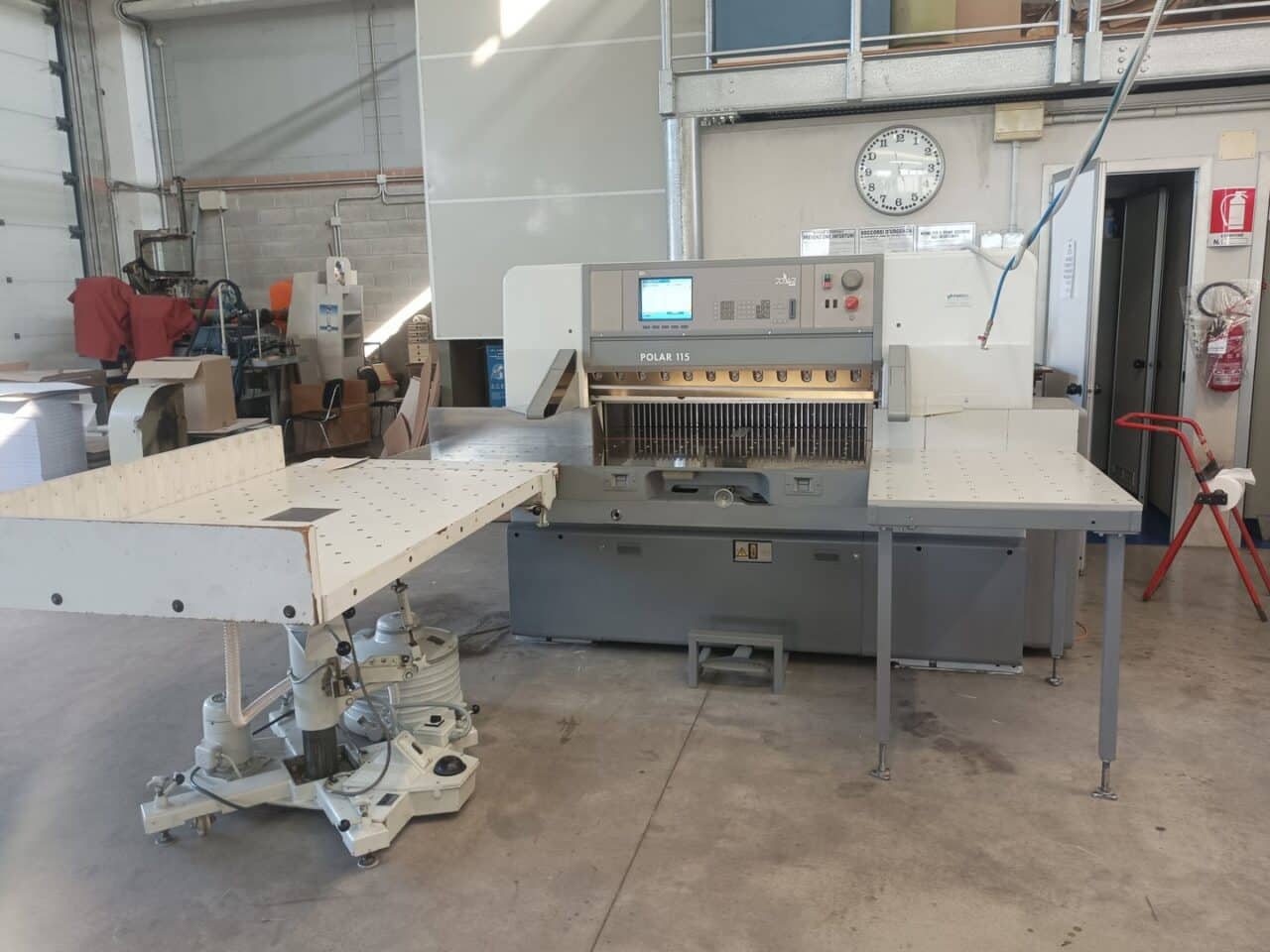 Il tagliacarte è stato venduto a norma, con fotocellule e coperture di sicurezza, lame affilate, chiavi di dotazione e manuali di istruzioni, con l’aggiunta dei piani maggiorati in formica 100×100.
