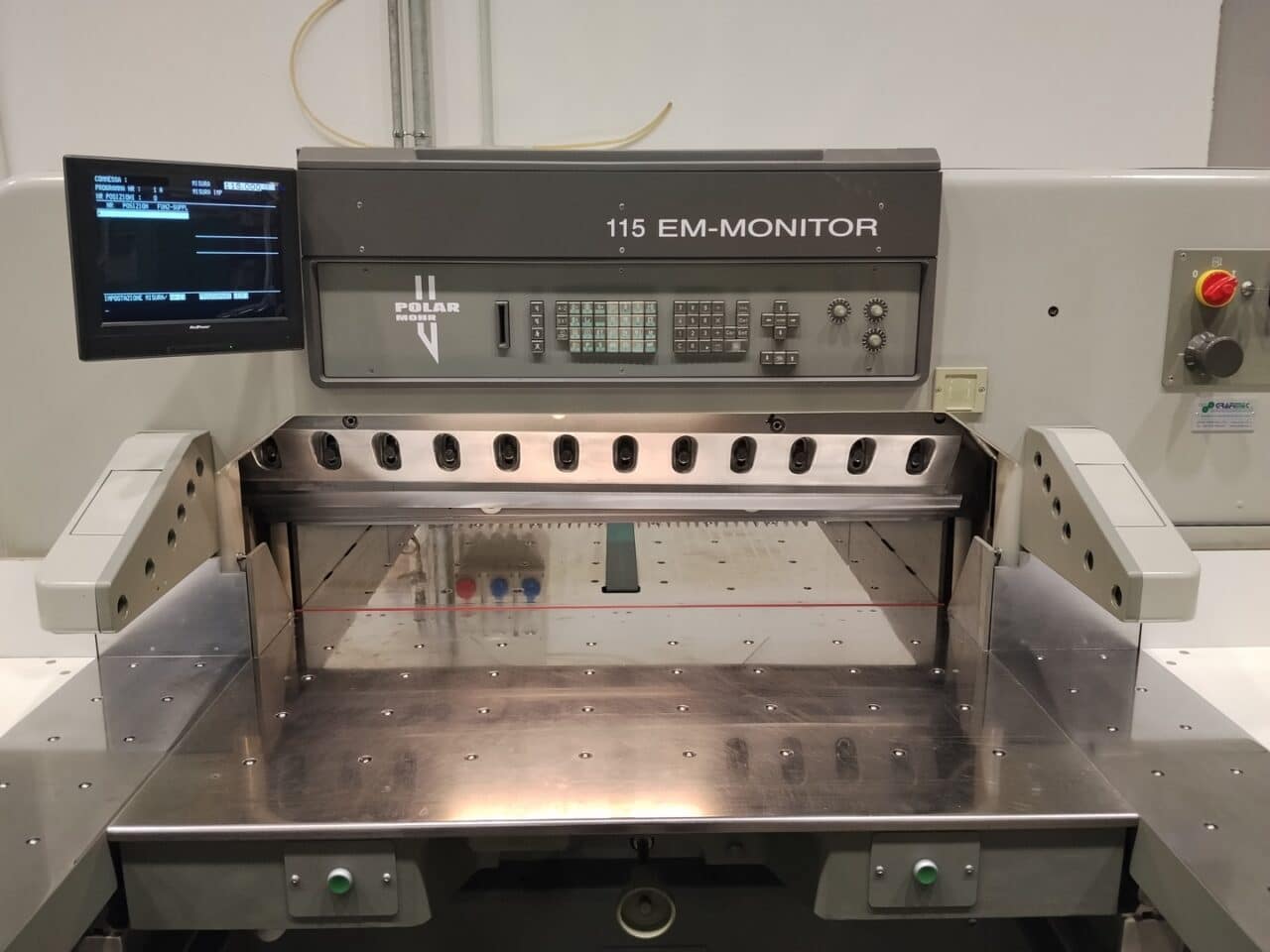 Il Tagliacarte Polar 115 EM-Monitor è stato completamente smontato, revisionato, riverniciato e collaudato dai nostri tecnici specializzati presso la nostra officina a Tribano (PD).