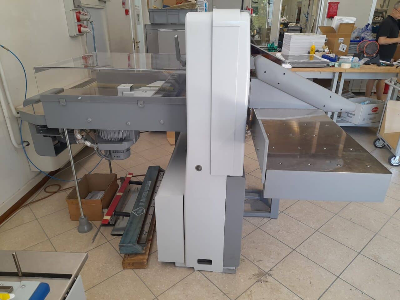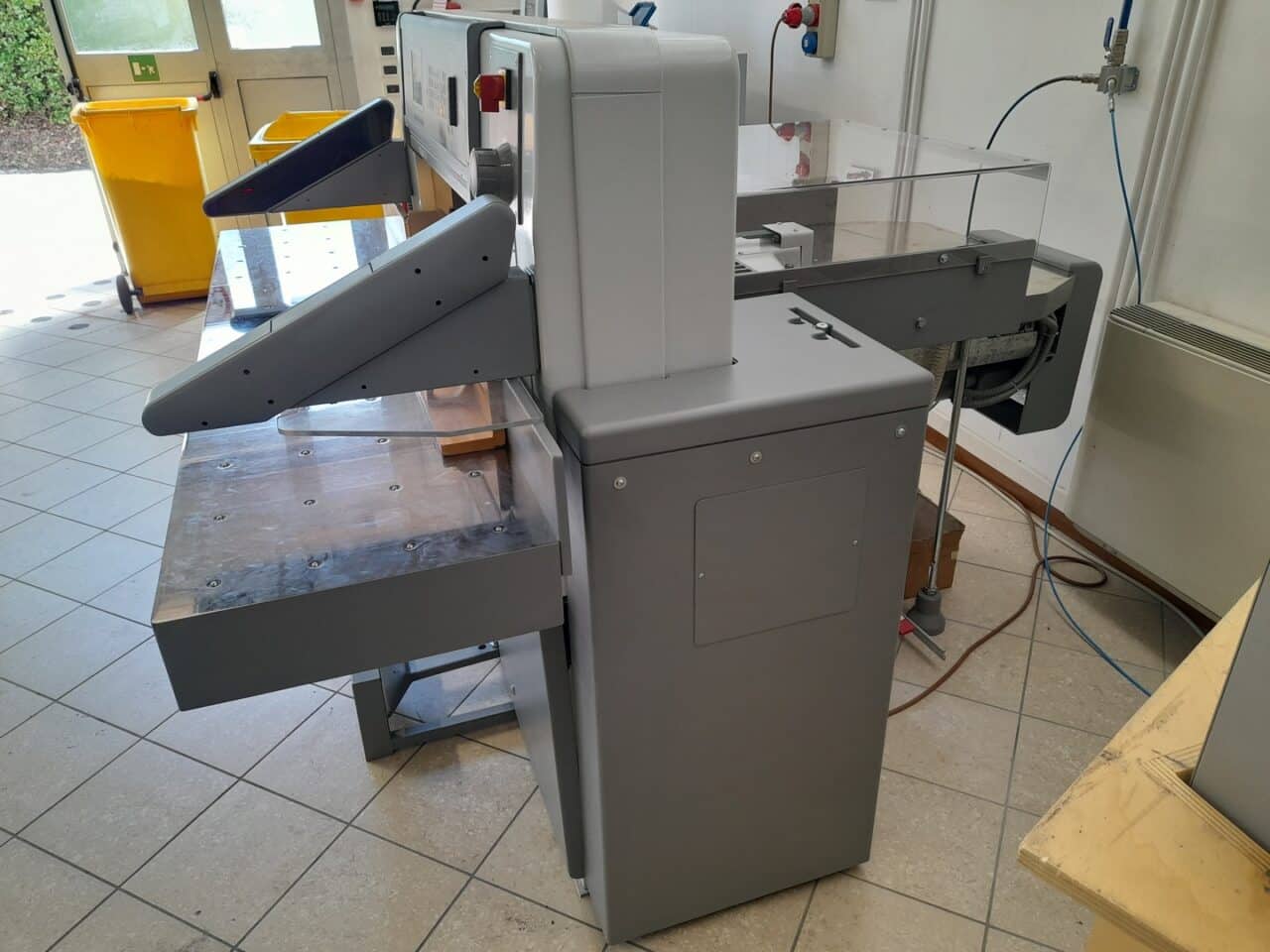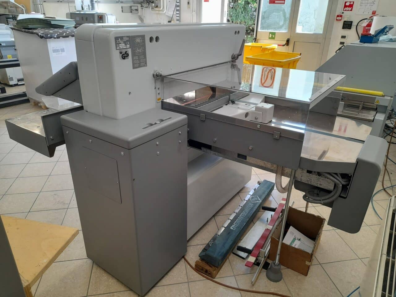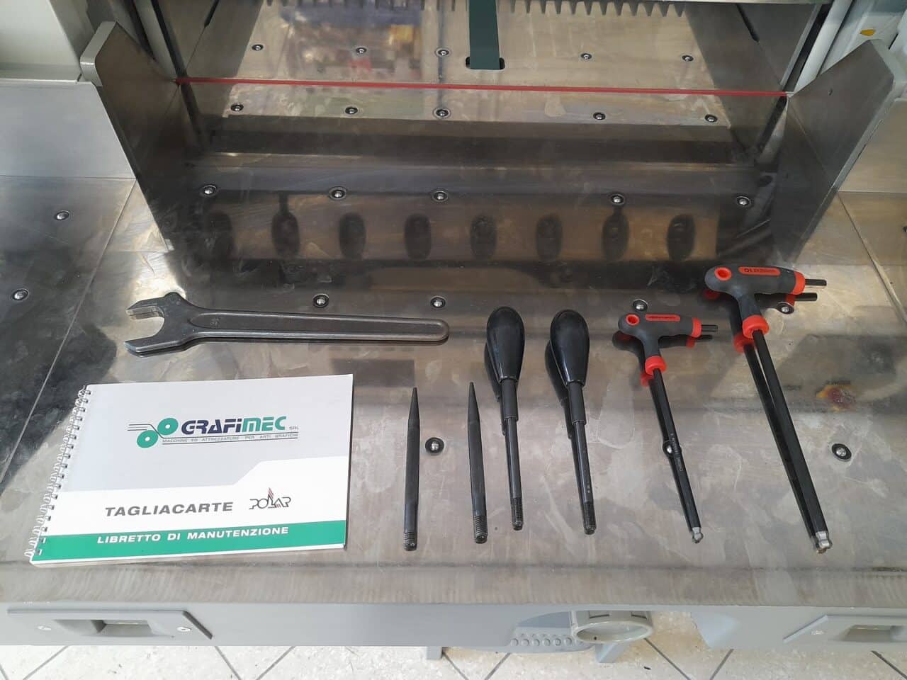 Il tagliacarte è stato venduto a norma, con fotocellule e coperture di sicurezza, lame affilate, chiavi di dotazione e manuali di istruzioni.