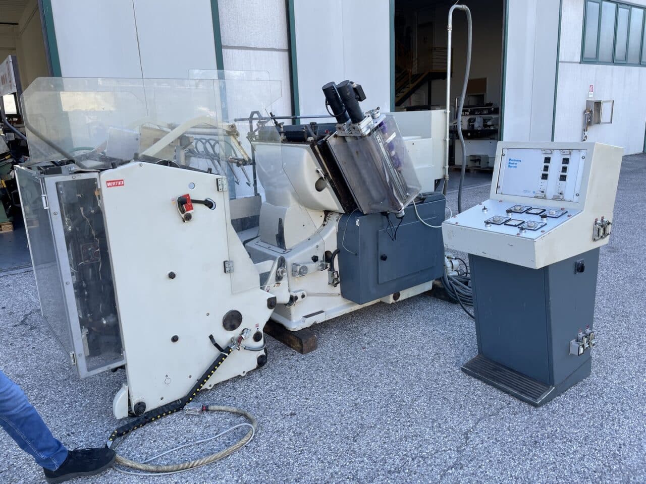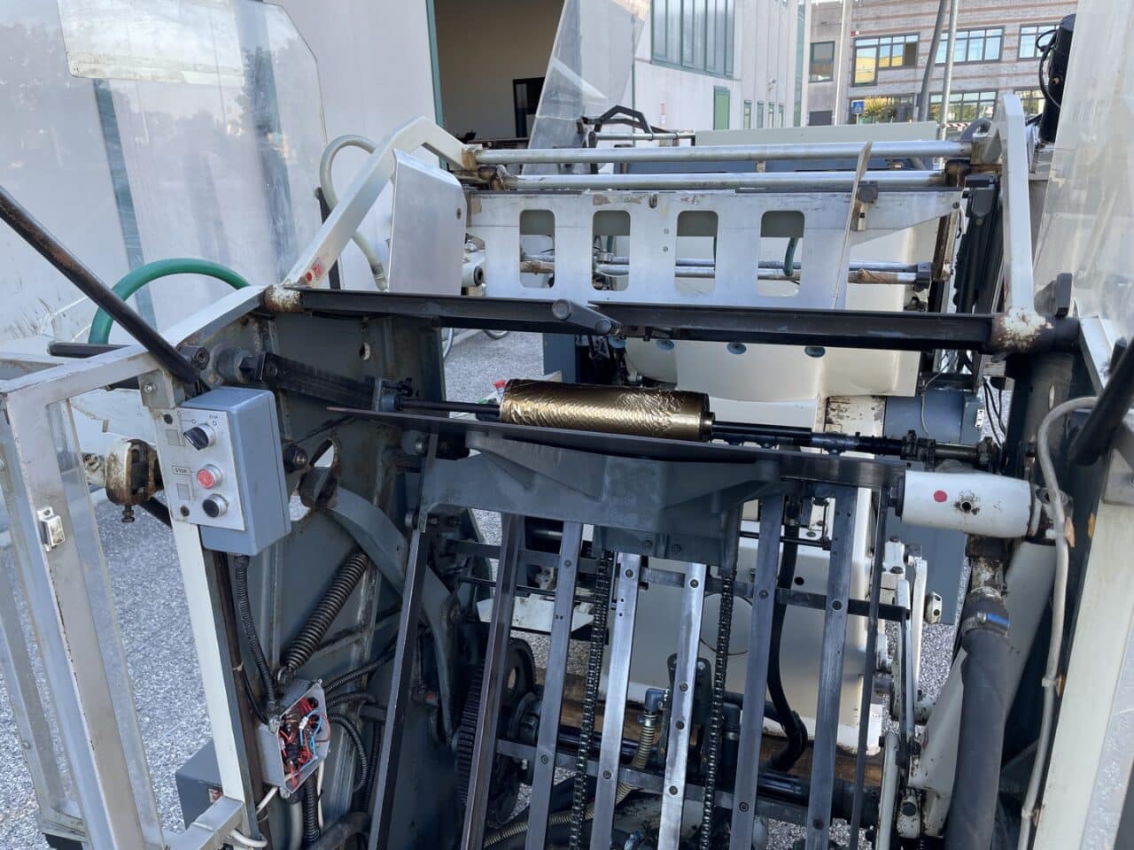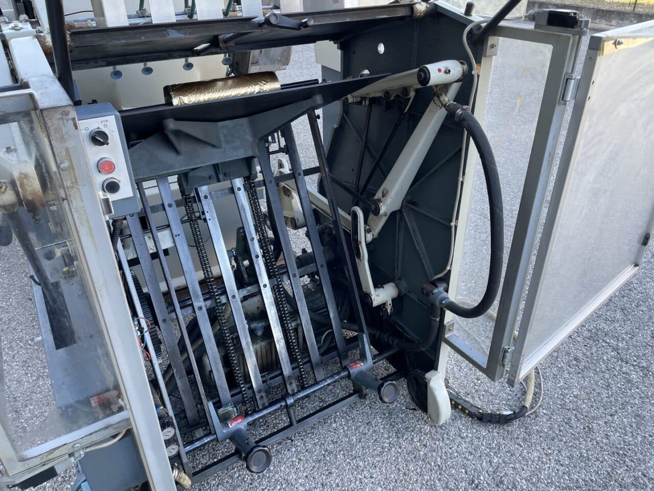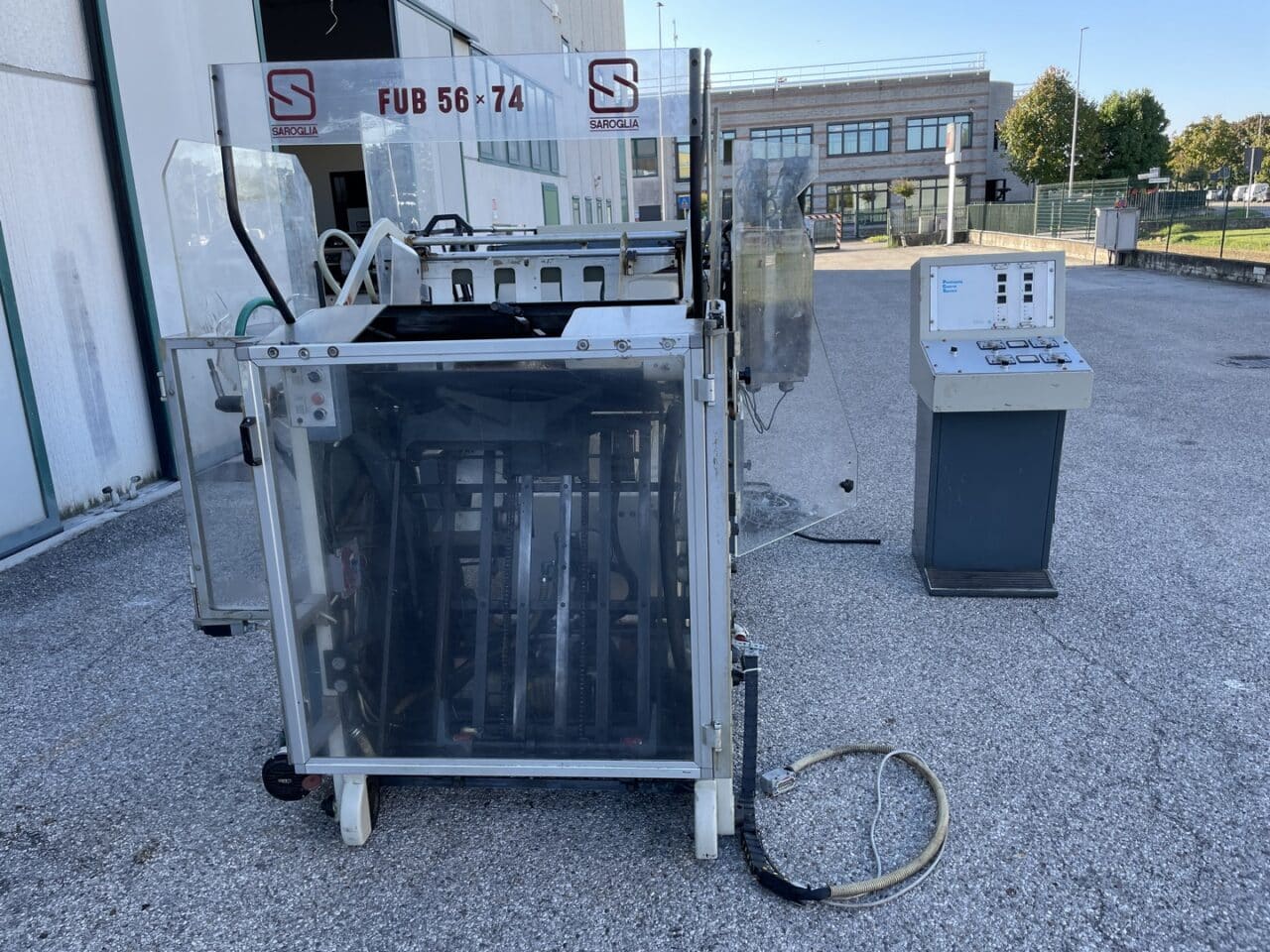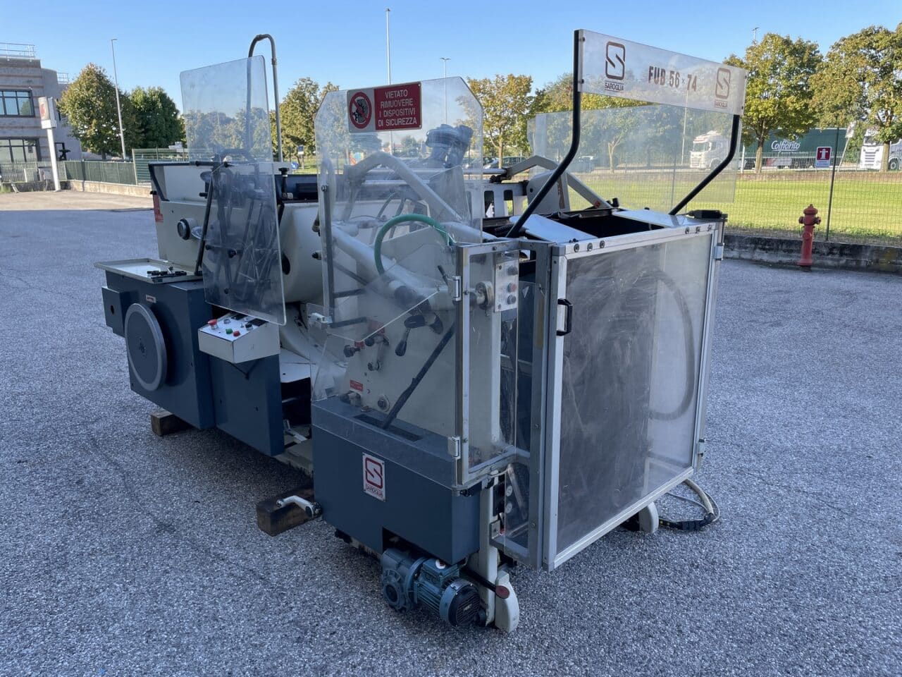 Platina fustellatrice con mettifoglio automatico Saroglia modello FUB 56×74 con dispositivo di stampa a caldo.